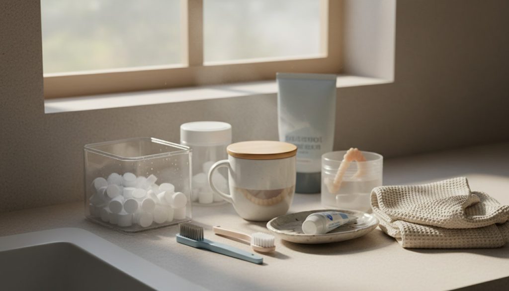 毎日のメンテナンスが必要です。毎食後に洗浄し、就寝前には義歯洗浄剤に浸けて汚れや雑菌を取り除く必要があります。ケアを怠ると、口の中にトラブルが起こる可能性があります。